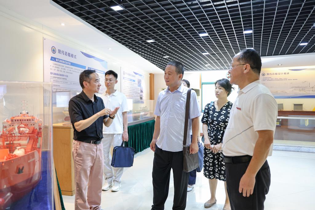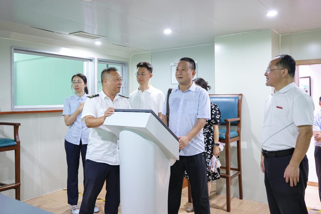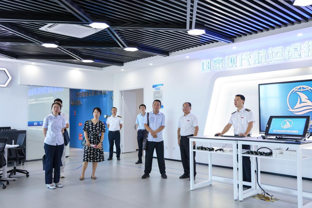 调研组实地考察了航海操纵模拟器、国家级现代航运虚拟仿真实训中心等特色教学场所,详细了解人工智能、虚拟现实等技术在专业教学、学生管理工作中的创新应用。
