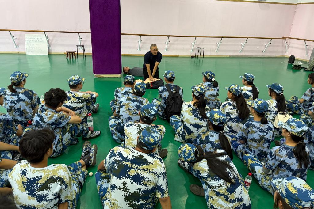 学习强本领。在新生开学第一课暨安全教育第一课中,新生学习了心肺复苏、AED操作等急救知识。在培训教师的指导下,新生掌握了应急救护的操作规范,提升了面对应急事件的处置能力,为构建和谐、安全、稳定的校园环境夯实基础。