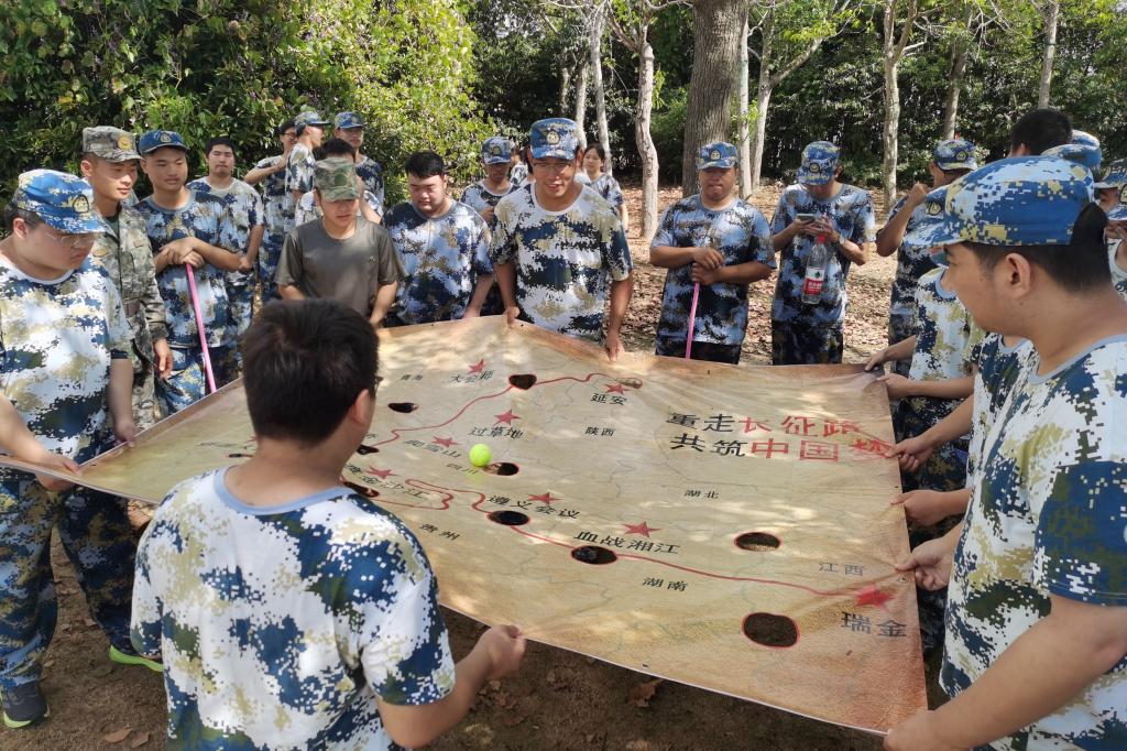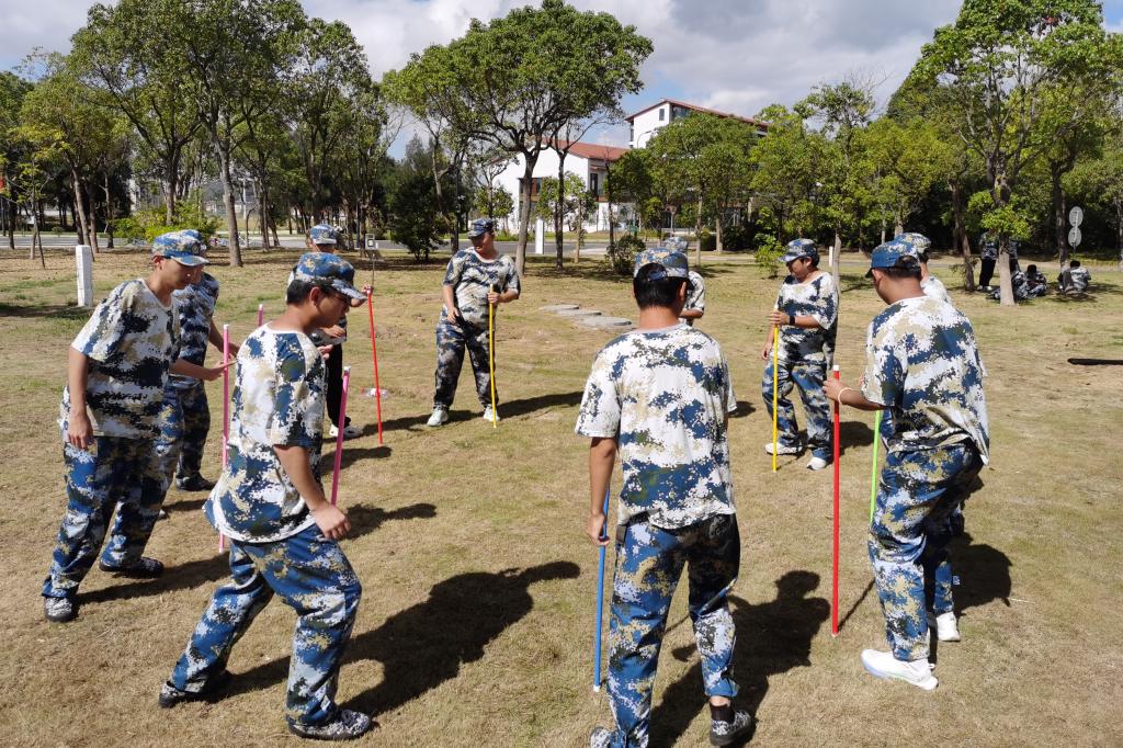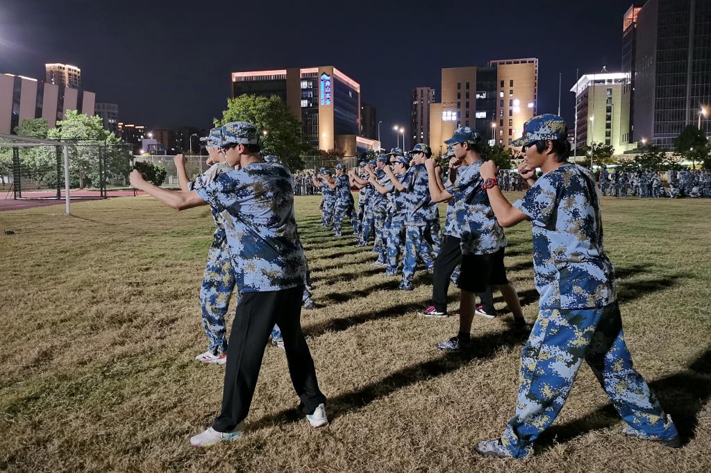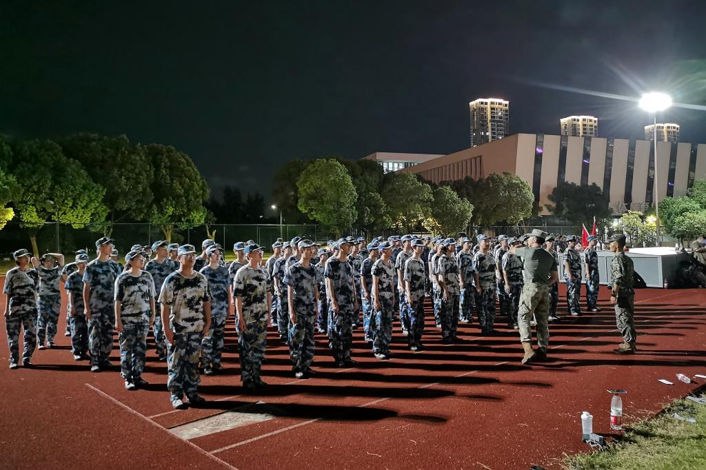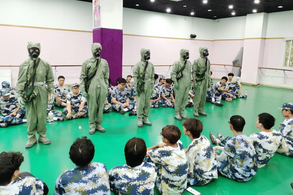 训练淬真章。在科目训练当中,新生在教官指导下反复练习,掌握军事技能。军拳飒爽,持枪英姿,训练不仅提升军事素养,更锤炼战斗精神。今年还新增部分特色项目,激发学生训练热情,如在军事定向越野项目中,结合体能、智力与团队协作,在校园内完成定向任务,综合锻炼了学生的体能、智力、团队协作和临场判断力;在防核防化演练中,模拟战场环境,学习防护装备穿戴,穿越“染毒”地带,让学生们切身感受到了国防教育的重要性与实战氛围;在“重走长征路”主题团建中,通过模拟长征场景,感悟革命精神,强化团队协作。通过特色项目,将军训、体育与思政教育有机融合,以沉浸式体验锤炼意志,深受学生欢迎。