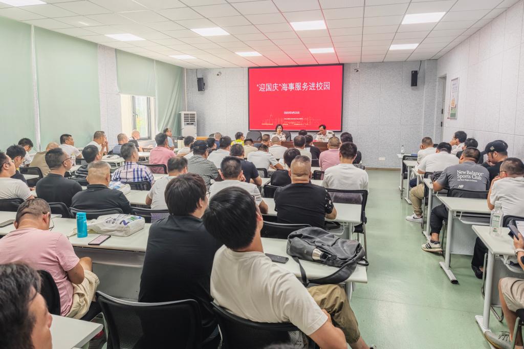 为切实解决当前船员培训中存在的‌法规应用能力不足‌、‌适任证书办理流程不清晰‌等突出问题9月23日,航海工程学院船员培训中心联合舟山海事局共同举办迎国庆“海事服务进校园”专题宣讲活动。活动通过案例教学、规则解读、互动答疑等形式,为80余名培训船员及教师提供了系统指导。