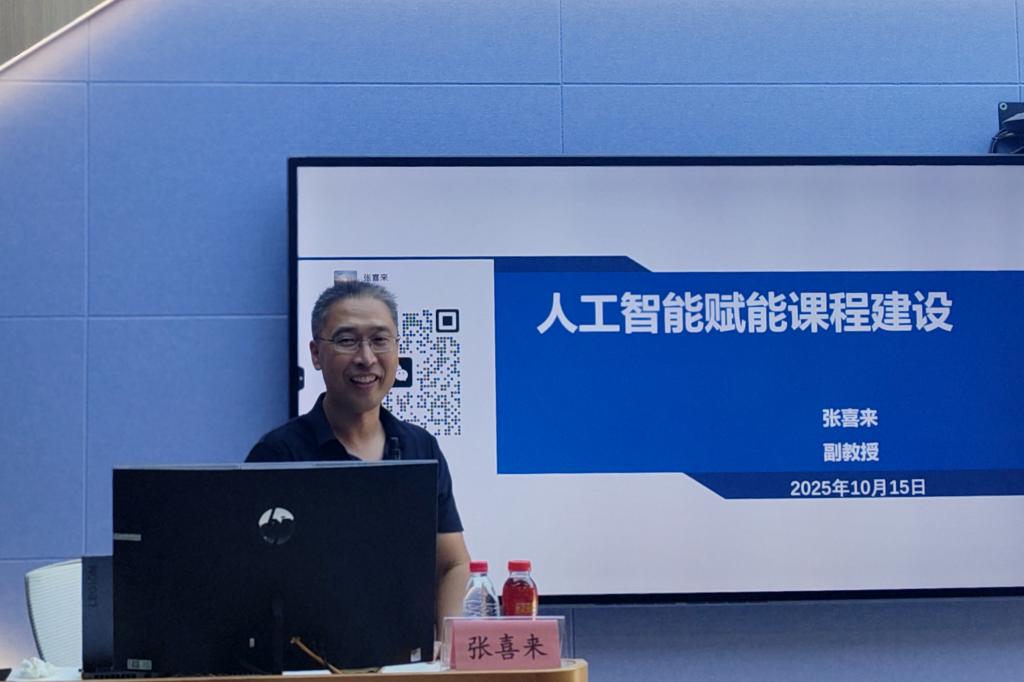 为推动人工智能与课程建设的深度融合,提升教师队伍数字素养,10月15日,国际教育学院在4122智慧教室举行“人工智能赋能课程建设”专题讲座,邀请了浙江舟山群岛新区旅游与健康职业学院的张喜来副教授担任主讲,学院全体教师和实用英语课程团队英语教师参加,会议由国际教育学院副院长颜天明主持。