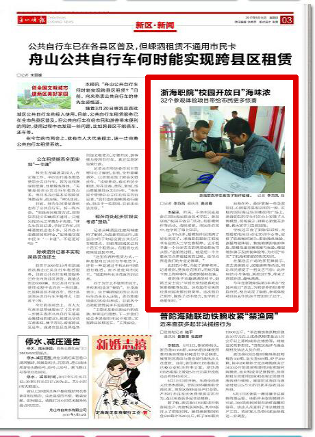 《浙江新闻》APP、《舟山晚报》:浙海职院“校园开放日”海味浓