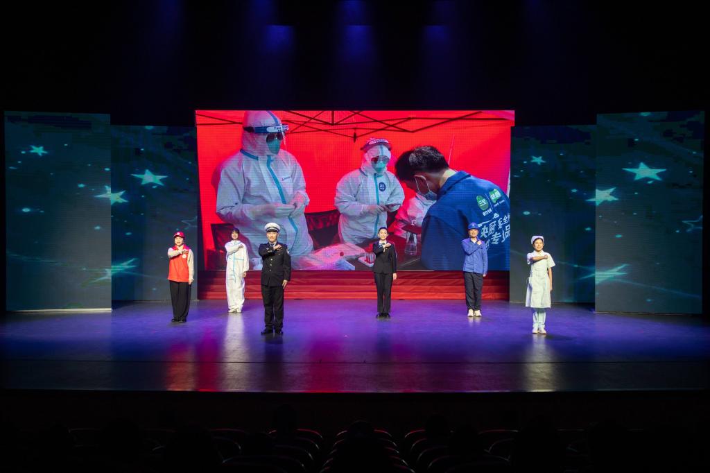 诗朗诵《青春中国》、歌曲《追光者》《星辰大海》、情景演绎《硬核青春,“疫”线有我》、歌舞《青春畅想》……颁奖礼上,一个个寓意深刻的节目,送给不负韶华、奋力追梦的杰出青年、优秀青年,致敬无悔青春!