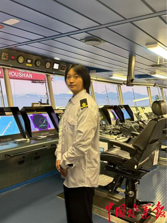 然而,航海之路对于女性而言并非一帆风顺。传统观念的束缚、身体条件的挑战以及行业内男性占主导的环境,都成为她前行道路上的重重障碍。2023年毕业前,她顺利考取无限航区三副适任证书,并成功入职法国达飞海运集团。在大型集装箱船实习期间,她遭遇了很多质疑的目光。一些船员对她的能力表示怀疑,认为女性在体力和应对紧急情况时可能会有所欠缺。但她并没有因此而气馁,反而更加努力地证明自己。在一次次船舶靠离泊作业中,她在操作过程中精准地执行指令,出色地完成了任务,赢得了船长和同事们的认可。