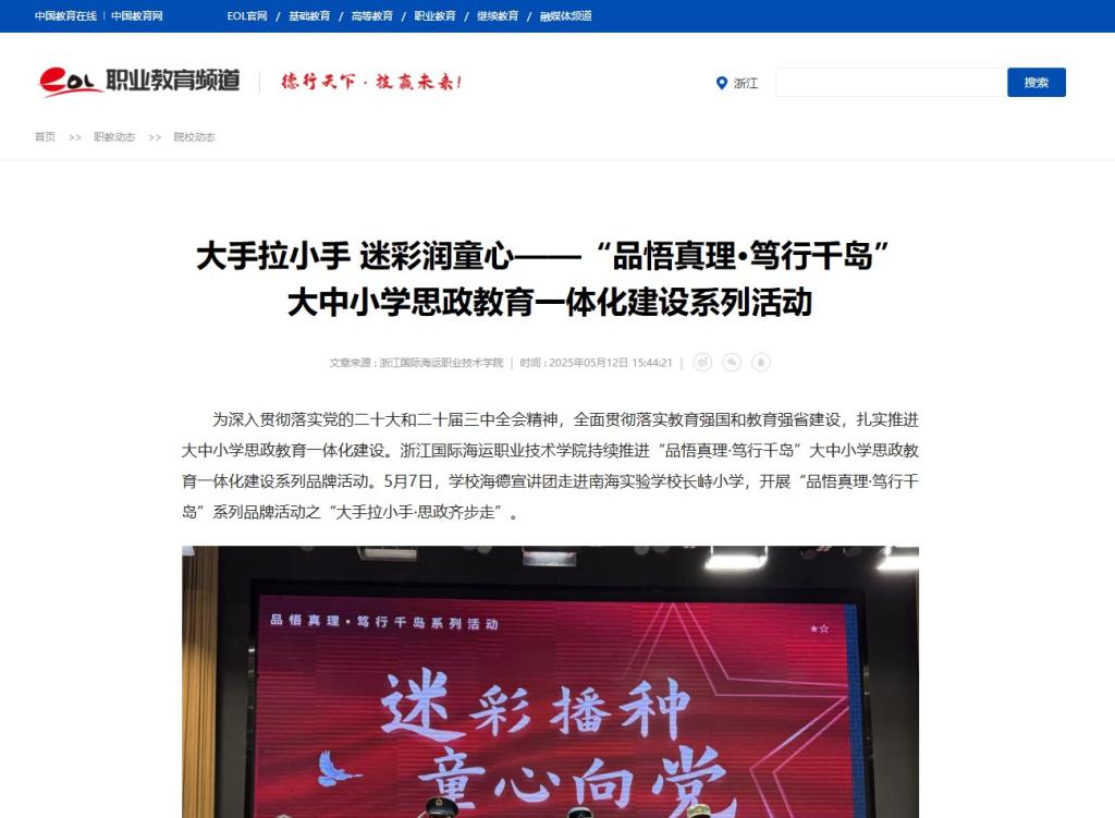 《中国教育在线》职业教育频道:大手拉小手 迷彩润童心——“品悟真理∙笃行千岛” 大中小学思政教育一体化建设系列活动