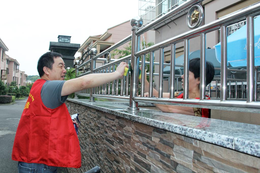 “阿伯侬好,阿拉舟山正在创建全国文明城市……”9月22日上午,我校近百名师生志愿者来到结对的金鸡山社区桃湾六期北区,利用周末走家入户发放社区创城倡议书和《舟山市民文明手册》,通过多种形式向市民宣传创城的好处,动员社区居民参与和支持文明城市创建,并帮助居民们清理楼道“牛皮癣”和绿化带垃圾。校领导陈定樑、胡国光、孔志光、刘相、江爱芬、孔志华参加了志愿服务活动。