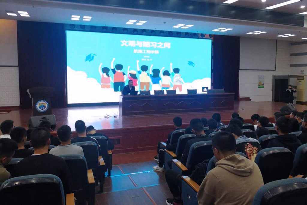 航海工程学院党总支书记韩开封以《文明与陋习之间》为题,与同学们共同探讨大学生人文精神和道德修养的内涵,剖析自身陋习与文明之间的距离,重温中国梦、社会主义核心价值观和习近平总书记在北京大学师生座谈会上的讲话精神,阐述了“文明不是遥不可及,其实就在每个人的言行举止中,只要摒弃陋习,文明触手可及”这一主题。韩开封肯定了同学们在第一阶段创建工作中付出的努力和取得的成绩,指出了创建工作中存在的问题和缺陷,要求大家继续按照要求把创建工作做细做实。讲座纠正了同学们在创建活动认知上的偏差,坚定了同学们做好创建工作的决心和恒心。(图文/航海工程学院)