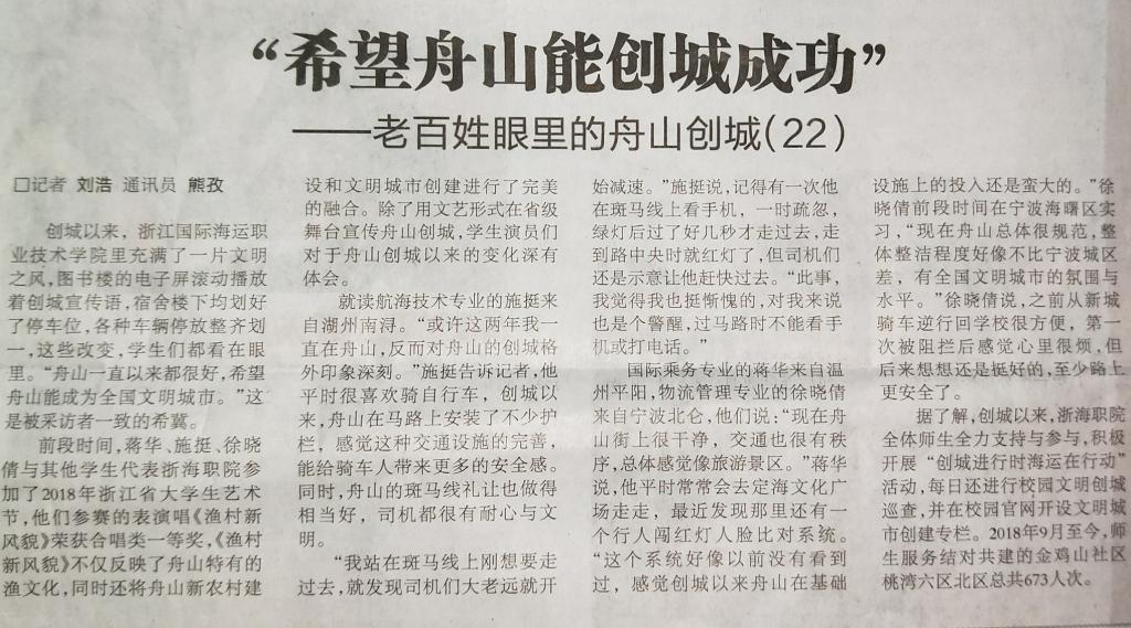 《舟山日报》:“希望舟山能创城成功”——老百姓眼里的舟山创城(22)