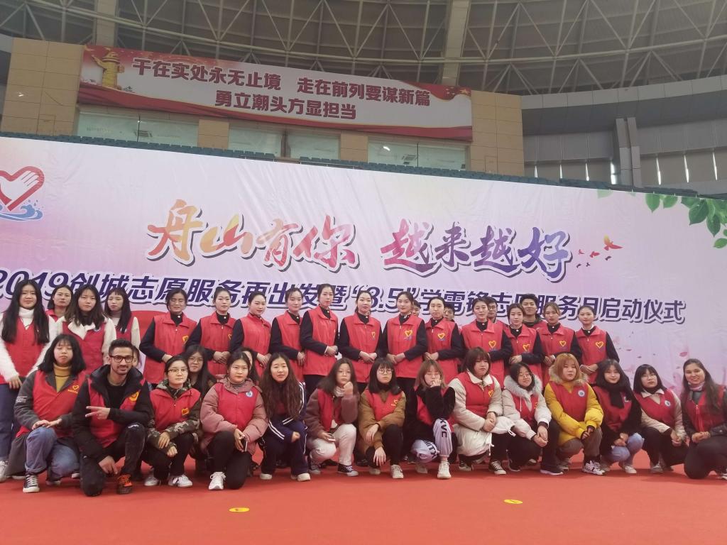 今年的3月5日是全国第56个学雷锋纪念日,也是第20个中国青年志愿者服务日。3月4日,“舟山有你 越来越好”——2019创城志愿服务再出发暨“3.5”学雷锋志愿服务月启动仪式在市体育馆举行,我校26名志愿者参加了此次启动仪式。
