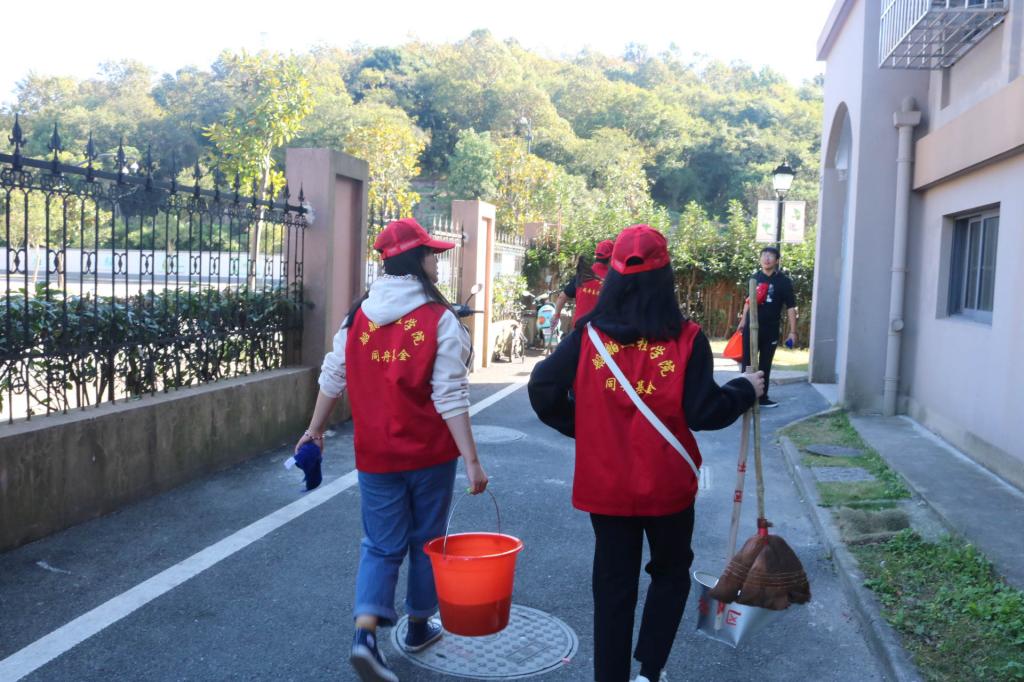 11月16日,船舶工程学院红十字分会志愿者来到金鸡山社区桃湾六期北区,帮助居民清洁楼道、清除黑色小广告、清理绿化带垃圾,通过实际行动助力社区文明城市创建工作。