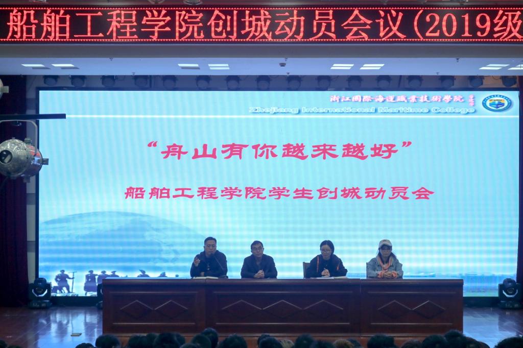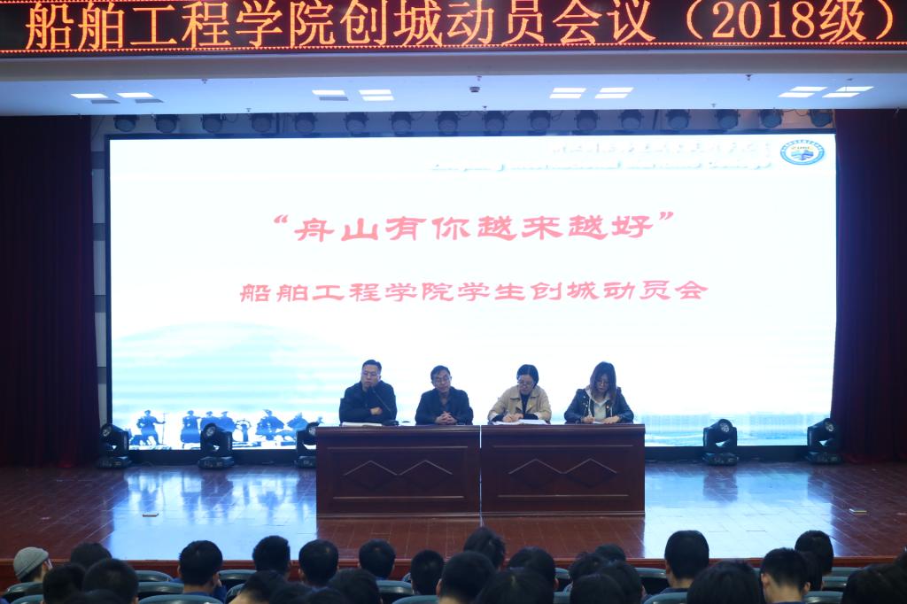 为全力迎接舟山创城国测,推进学校文明校园建设工作,船舶工程学院于11月19日-20日中午在图书馆报告厅开展了“舟山有你,越来越好”学生创城动员会,2018、2019级在校学生参加。