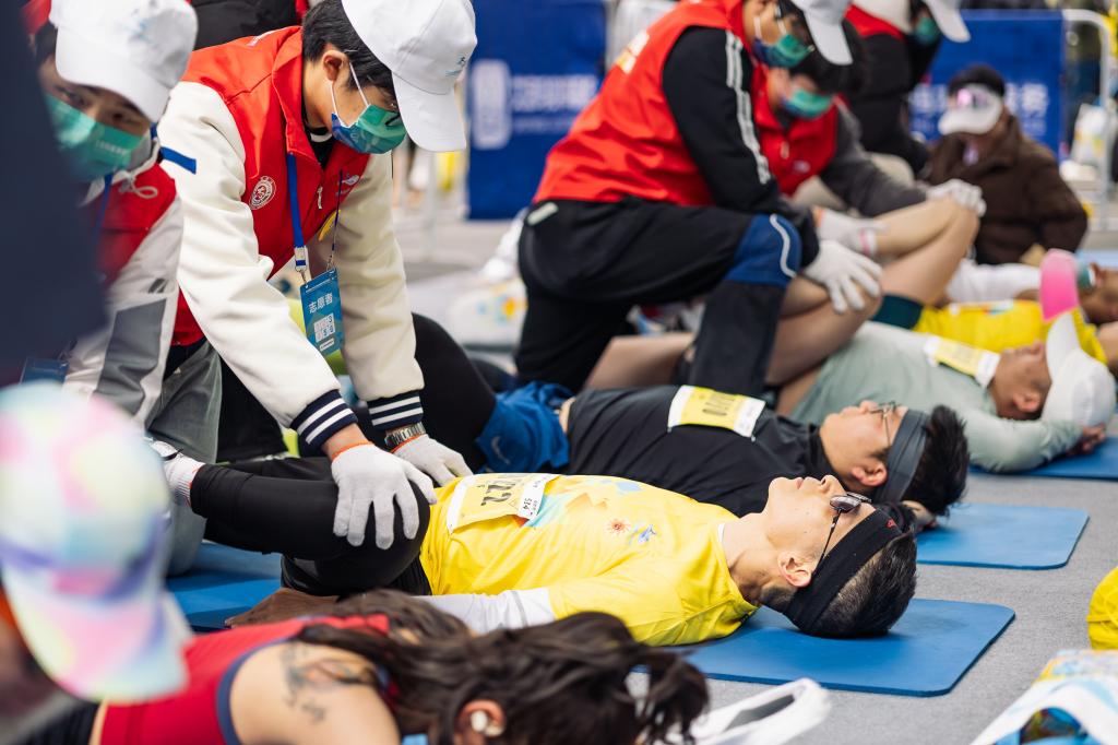 21公里的赛道上每隔100米就有一位“守护者”,这些医疗志愿者配合医生和急救人员,确保每一位跑者的安全,他们不仅是6000名跑者的“眼睛”,更是“双手”,随时准备为需要帮助的跑者提供支持。无论是递上一杯水,还是协助医疗团队进行紧急救护,志愿者们都以高度的责任感和专业态度完成任务。