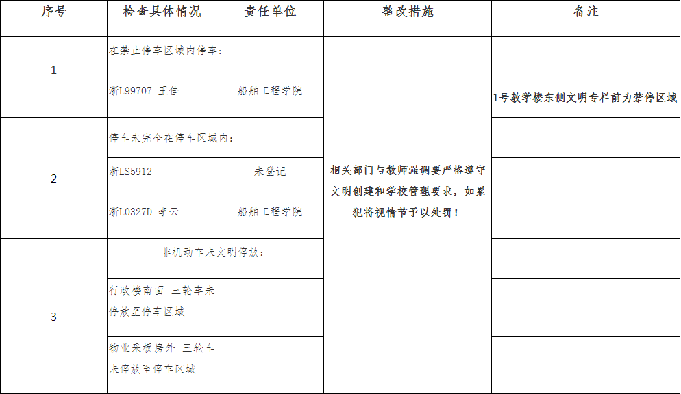 学校全国文明城市和文明校园创建工作车辆停放专项检查情况通报(5月14日)