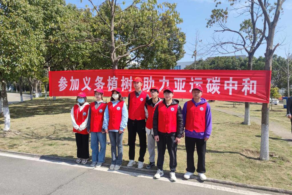 师生们共同参加义务植树,助力亚运碳中和。大家齐心协力美化校园环境,共同为“美丽海运”建设培土助力。(校工会、校团委、后勤产业处)