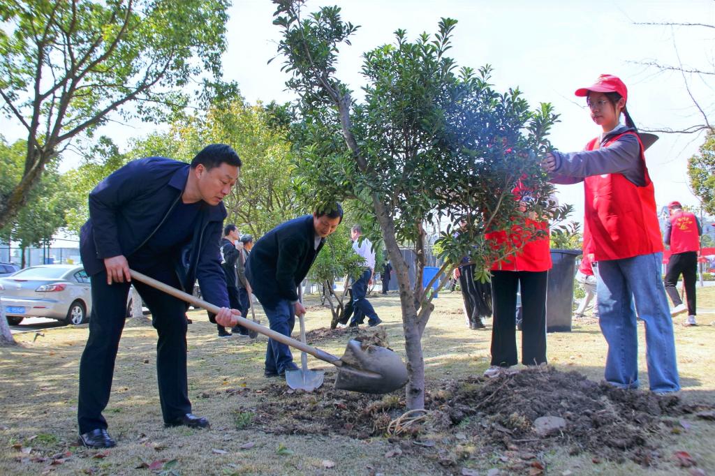 教职工们意气风发、分工协作、干劲十足,还纷纷带动“志愿红”栽下“希望绿”,校园奏响“春之序曲”。