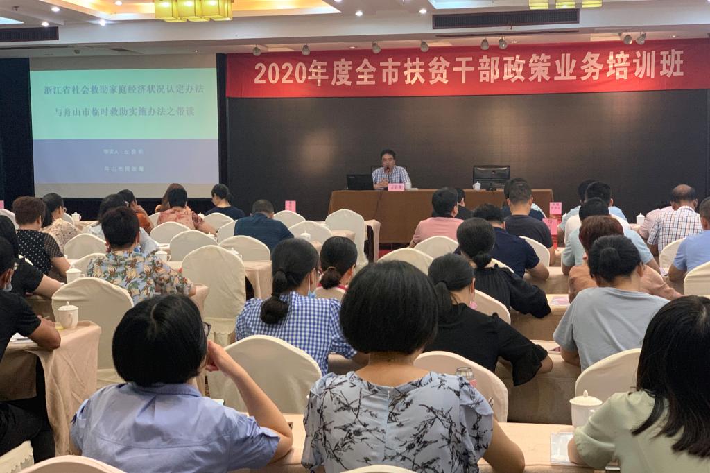 培训班邀请了市相关部门专家进行讲座,专家们针对“《浙江省社会救助家庭经济状况认定办法》及《舟山市临时救助办法》解读”、“紧抓机遇、夯实基础,努力做好我市海岛特色一事一议财政奖补工作”、“残疾人扶贫政策解读”、“就业扶贫政策解读”、“舟山市学生资助政策介绍”、“浙江省扶贫数字化管理系统操作讲解”、“坚决贯彻落实《习近平总书记扶贫重要论述》,深化扶贫领域腐败和作风问题专项治理”、“省、市扶贫工作相关文件精神及2020年扶贫重点工作讲解、布置”等七个专题进行了深入细致的辅导讲座,参训人员普遍反应培训效果好、收获大。