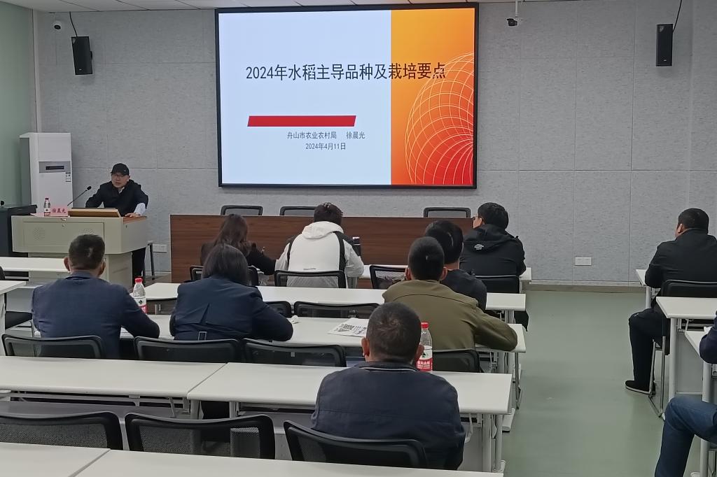 为全面贯彻落实省、市“新春第一会”精神,全面加强舟山市“高素养劳动者队伍”建设,4月10日-12日,由舟山市农业农村局主办、东海教育学院承办的2024年舟山市春耕备耕及主要农作物大面积单产提升技术培训班在我校社会服务中心303教室举行。市农业农村局三级调研员翟金强、农业技术推广中心主任夏卓盛参加开班仪式,来自各县区的40余名种粮大户参加了此次培训,开班仪式由职业培训中心主任苏峰主持。