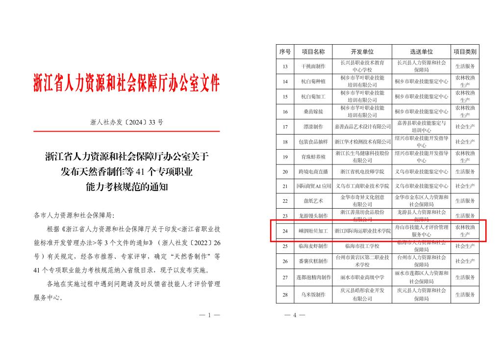 近日,浙江省人力资源和社会保障厅办公室发布了新一批专项职业能力考核规范目录的通知,我校海洋旅游学院何定芬老师主持的《嵊泗贻贝加工专项职业能力考核规范》成功入选省专项职业能力考核规范目录。