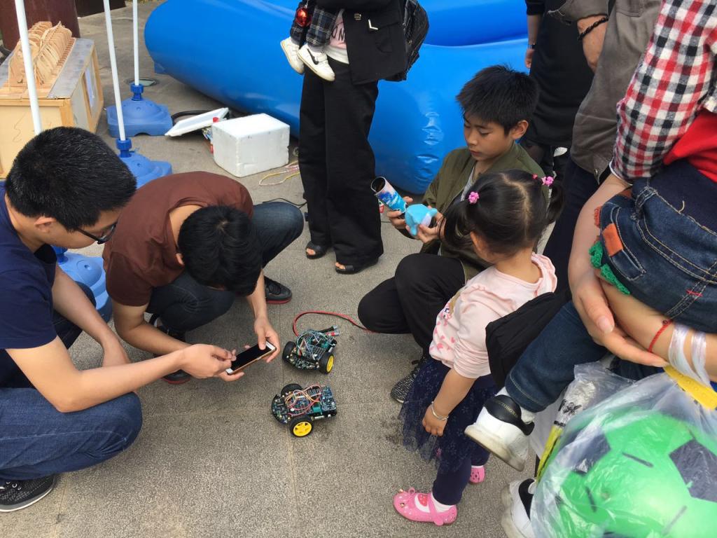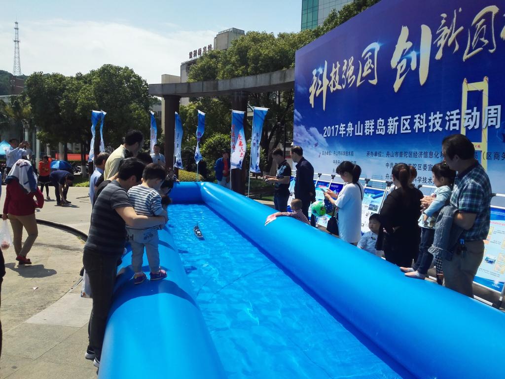 在活动现场,我校通过展示科技展板与船模、操作WiFi智能小车、发放科普宣传画册等多种形式,吸引了大批市民的驻足观看;具有特色的水上船模航行活动更是提高了市民的参与热情,成为活动现场一个亮点。