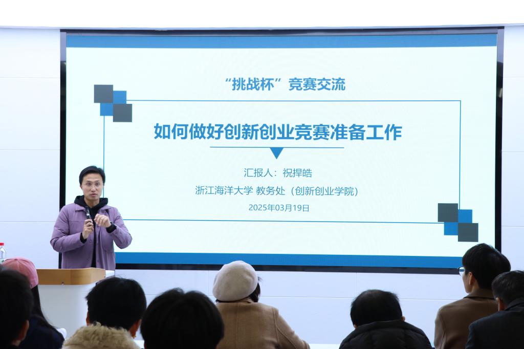 为深入学习贯彻习近平新时代中国特色社会主义思想,落实国家“双创”工作部署,强化学生实践能力与创新精神,培养具有创新意识、实践能力和创业精神的创新人才,3月19日下午,校团委联合致远创业中心特邀“挑战杯”国赛金奖指导老师祝捍皓教授来校开展专项辅导。本次活动吸引了各参赛项目指导教师、项目学生负责人以及团队成员共计40余人参与,活动在4117教室顺利举行。